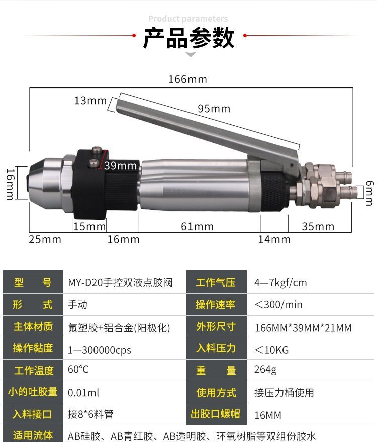 當前位置:達立誠首頁 > 單液點膠閥 > MY-D20手控雙液閥