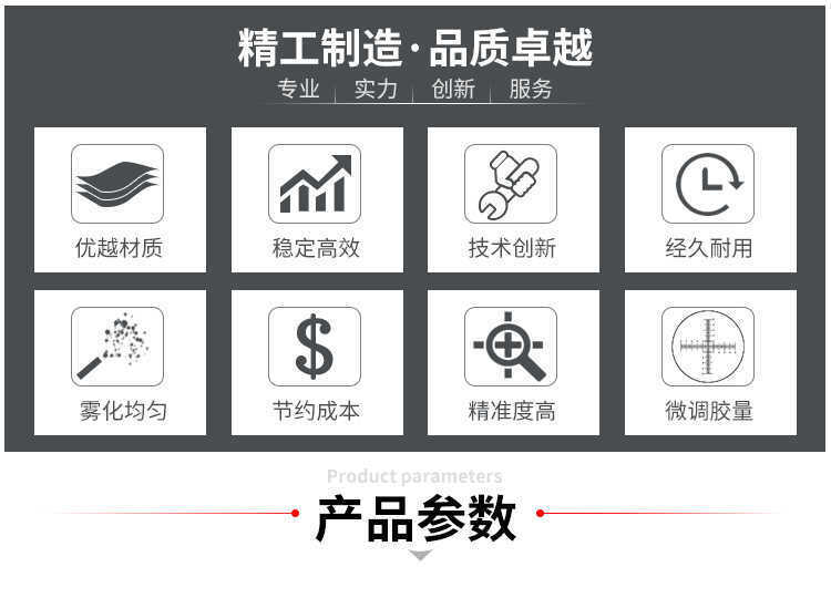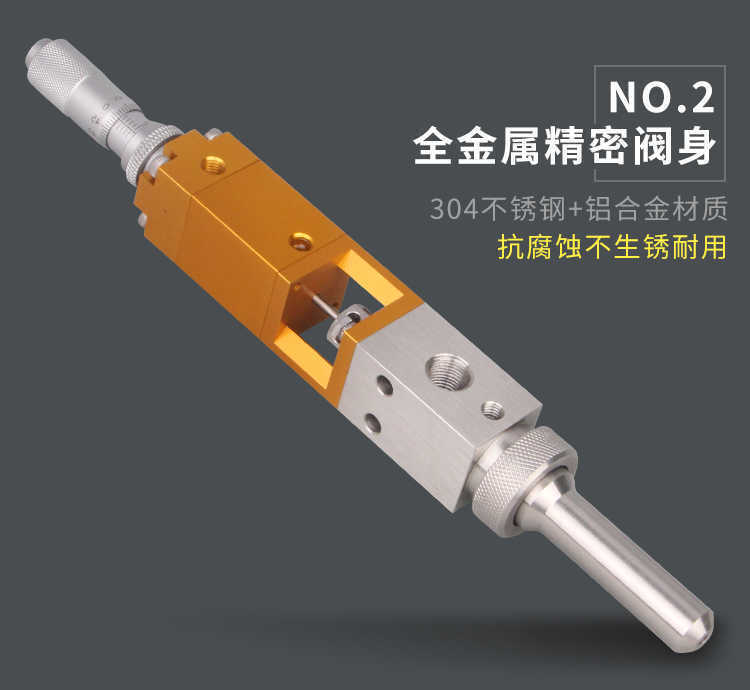 3、精密點膠閥,出膠量可以微調(diào),精度達到0.1ml,出膠寬度小的可達到0.1mm,斷膠干凈,杜絕拉絲滴漏等問題;