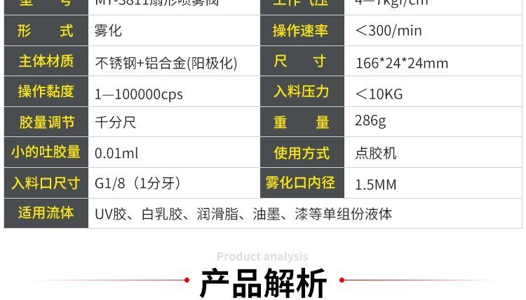 達(dá)立誠MY-3811扇形噴霧閥液體精密霧化點(diǎn)膠閥氣動噴膠水油漆膠量可調(diào)