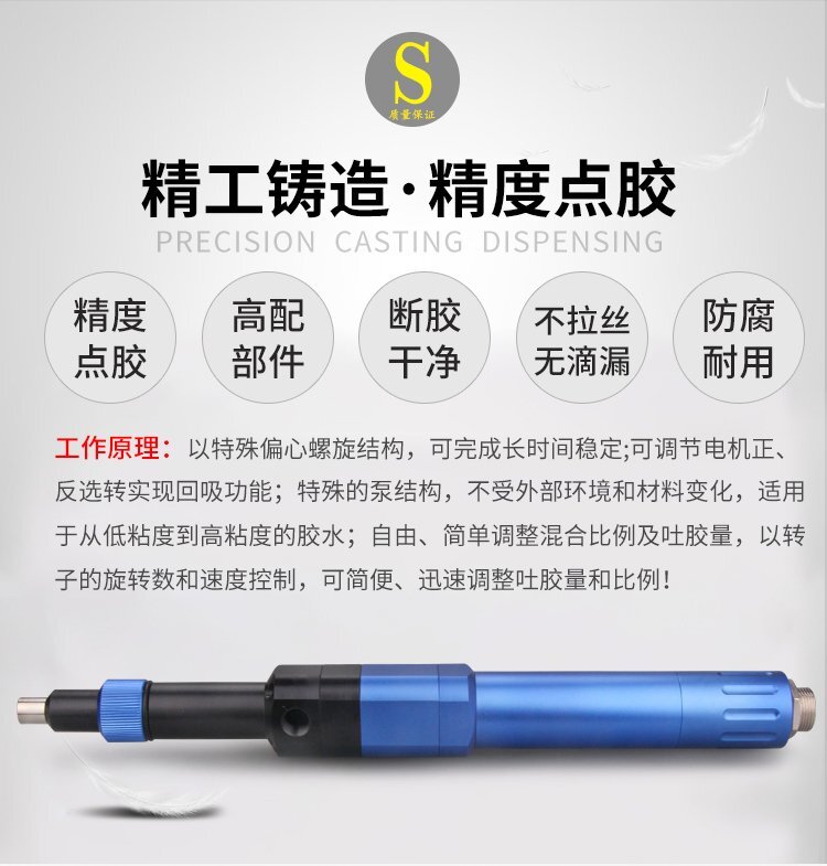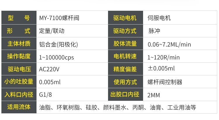 螺桿閥特點:精密螺桿閥外形輕巧,方便手握;操作簡單,靈活性強,點膠精度高。螺桿閥的應(yīng)用領(lǐng)域:適用于焊錫膏,銀漿,紅膠,油脂,UV膠,硅膠等,應(yīng)用于焊錫膏焊接,芯片粘結(jié),芯片封裝,圍壩等工藝采用Z向旋轉(zhuǎn)螺桿進(jìn)行物料輸送,解決了氣壓點膠方式,由于氣體的可縮性所帶來的脈動,出膠量不一致的問題。電機正反轉(zhuǎn)分別控制,正向旋轉(zhuǎn)可使用物料按照需要的流量被均勻擠出,反向旋轉(zhuǎn)可實現(xiàn)熱熔膠的回吸,避免漏膠,拉絲等現(xiàn)象適合工程/工廠長期生產(chǎn)使用;有大量現(xiàn)貨供應(yīng),歡迎咨詢采購!