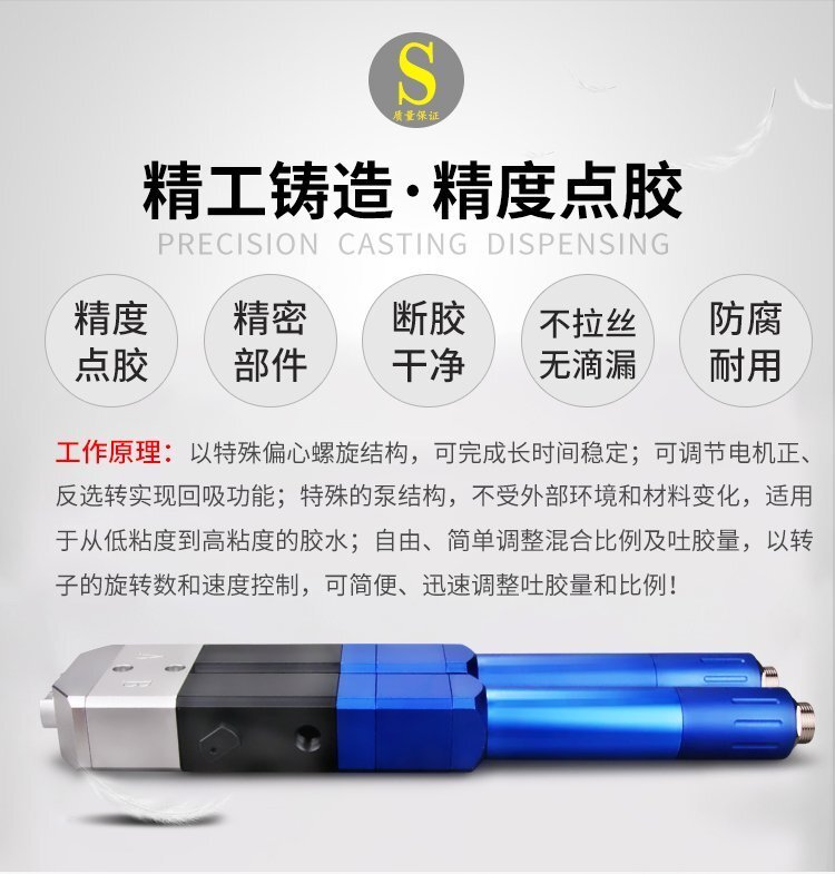 螺桿閥特點:精密螺桿閥外形輕巧,方便手握;操作簡單,靈活性強,點膠精度高。螺桿閥的應用領域:適用于焊錫膏,銀漿,紅膠,油脂,UV膠,硅膠等,應用于焊錫膏焊接,芯片粘結,芯片封裝,圍壩等工藝采用Z向旋轉螺桿進行物料輸送,解決了氣壓點膠方式,由于氣體的可縮性所帶來的脈動,出膠量不一致的問題。電機正反轉分別控制,正向旋轉可使用物料按照需要的流量被均勻擠出,反向旋轉可實現(xiàn)熱熔膠的回吸,避免漏膠,拉絲等現(xiàn)象適合工程/工廠長期生產(chǎn)使用;有大量現(xiàn)貨供應,歡迎咨詢采購!
