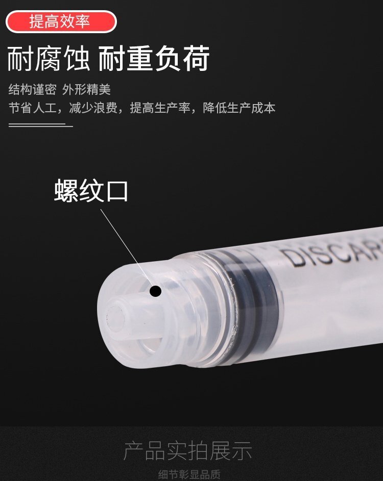 注射器塑料針筒,有螺口和大口兩種出膠口型可選,規(guī)格:3ML、5ML、10ML、20ML、50ML、60ML、3ML、100ML、150ML、200ML、250ML、300ML;采用環(huán)保型PP材料制造,耐磨耐用,不易破裂,適合工程/工廠長期生產(chǎn)使用;有大量現(xiàn)貨供應(yīng),歡迎咨詢采購!