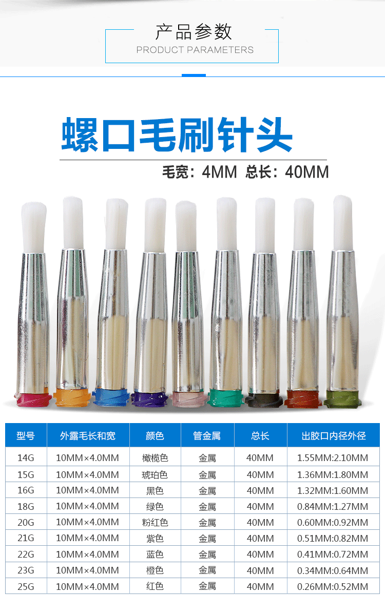 毛刷針頭主要針對(duì)不同面積涂膠的產(chǎn)品工藝,具有涂膠均勻、不堆膠、不斷膠,適合大面積表面刷圖膠液;毛刷為尼龍材質(zhì),韌性佳,不斷毛,不 掉毛,軟毛接觸產(chǎn)品,安全可靠,極大的提高生產(chǎn)效率!