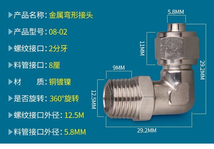 各種類型金屬進(jìn)料接頭有1/8(1分牙)和1/4(2分牙)接口可選;采用不銹金屬材料制造,防腐耐用,適合工程/工廠長(zhǎng)期生產(chǎn)使用;有大量現(xiàn)貨供應(yīng),歡迎咨詢采購(gòu)!