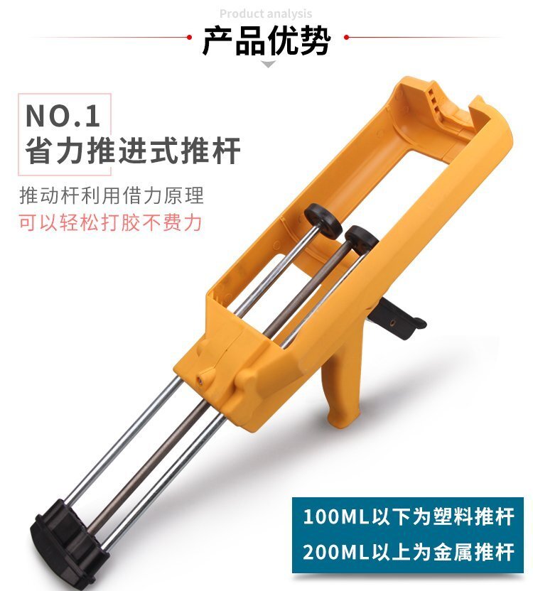 此款膠槍為200毫升AB膠筒1:1專用,推桿式結(jié)構(gòu),打膠高效省力;外殼采用特殊材料制造,不易斷裂,推桿使用質(zhì)密金屬材質(zhì),耐力性好,不彎曲變形,適合工程/工廠長(zhǎng)期生產(chǎn)使用;有大量現(xiàn)貨供應(yīng),歡迎咨詢采購(gòu)!