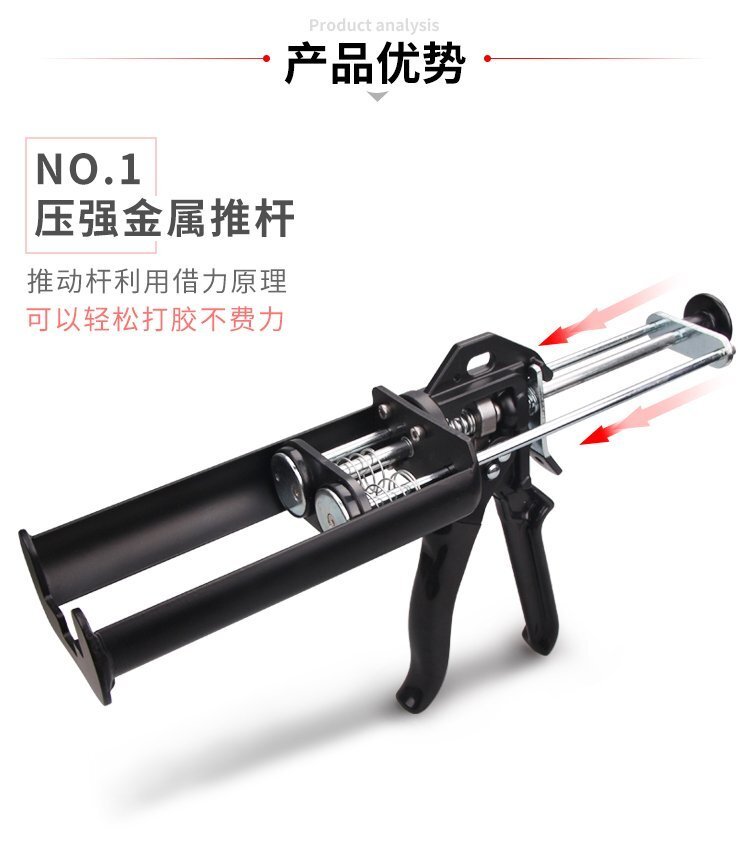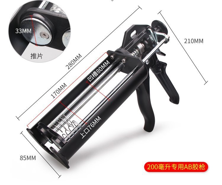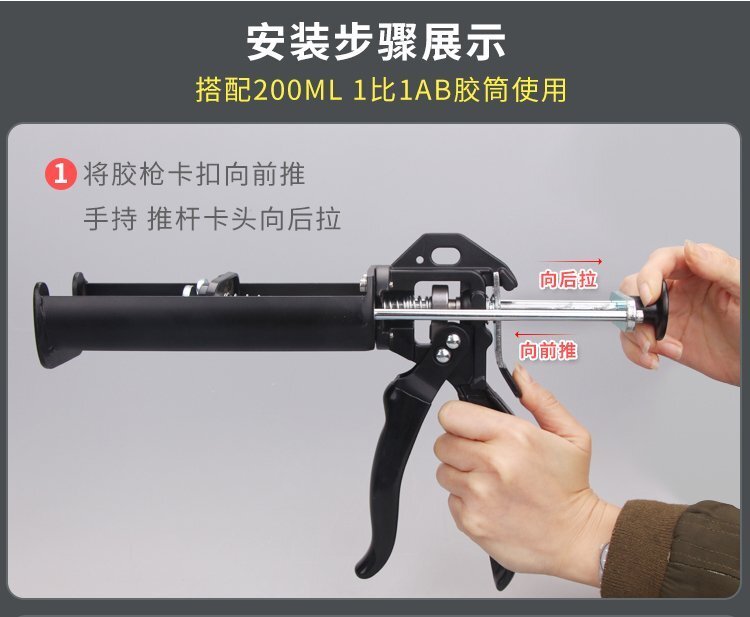 此款膠槍為200毫升AB膠筒1:1專用,推桿式結(jié)構(gòu),打膠高效省力;膠槍整體采用推桿質(zhì)密金屬材質(zhì),防腐蝕不生銹,不彎曲變形,抗壓耐磨,適合工程/工廠長(zhǎng)期生產(chǎn)使用;有大量現(xiàn)貨供應(yīng),歡迎咨詢采購(gòu)!