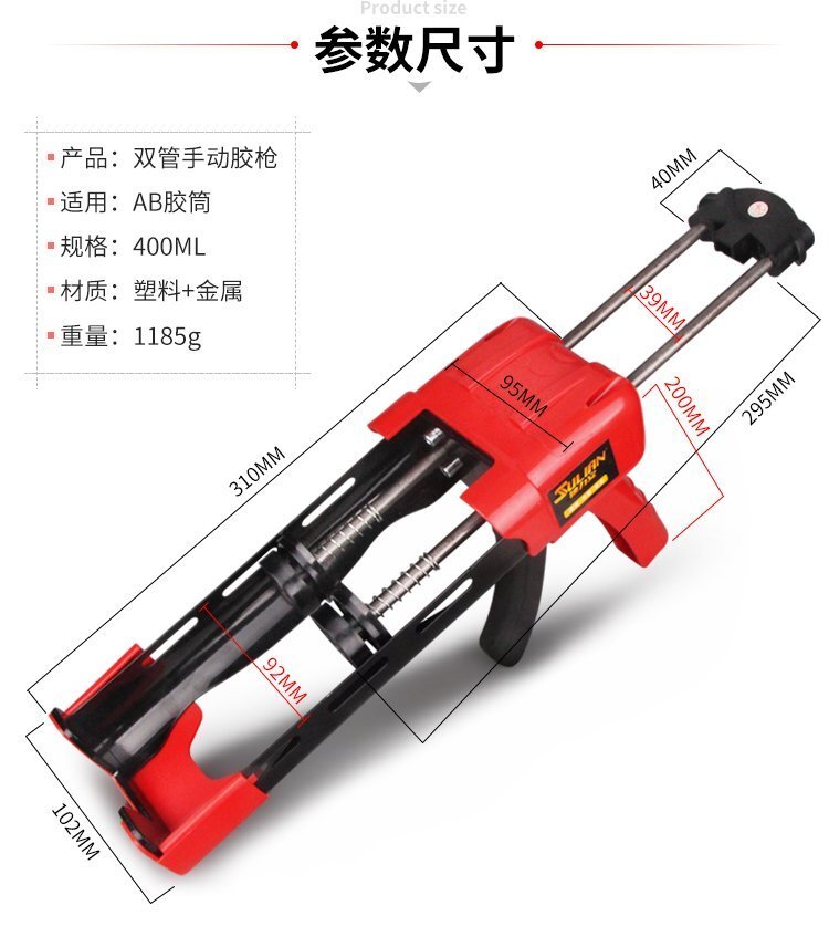 400ML省力型手動(dòng)膠槍美縫劑施工工具瓷磚專業(yè)雙管雙組份助力膠槍