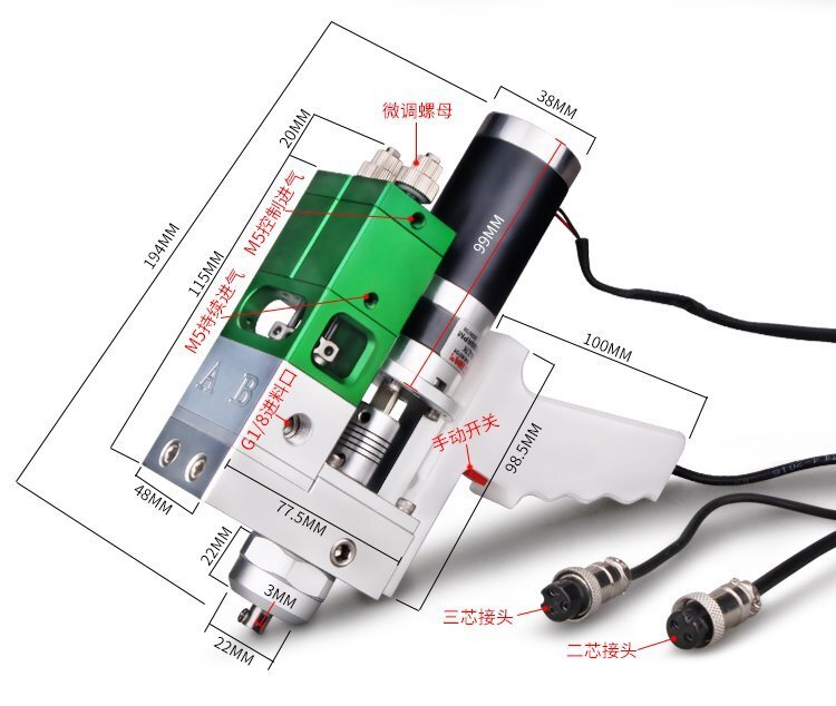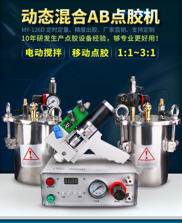 MY-126D手持閥移動點膠機(jī),電動攪拌動態(tài)混合,出膠穩(wěn)定,點膠精度高,不拉絲不滴漏,手持槍托控制,點膠自由輕松,可與各種自動化設(shè)備搭配使用;適合多種AB雙組份膠水,如:AB硅膠、封灌黑膠、環(huán)氧樹脂、AB水晶膠、AB青紅膠等工業(yè)膠水;配合高精密點膠雙液閥,膠水比例可調(diào)1:1至3:1,有大量現(xiàn)貨供應(yīng),歡迎咨詢采購!
