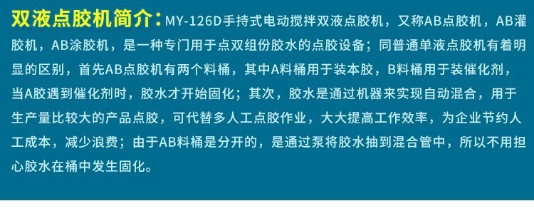 當(dāng)前位置:達(dá)立誠首頁 > 全自動點膠機(jī) > MY-126D手持式AB點膠機(jī)
