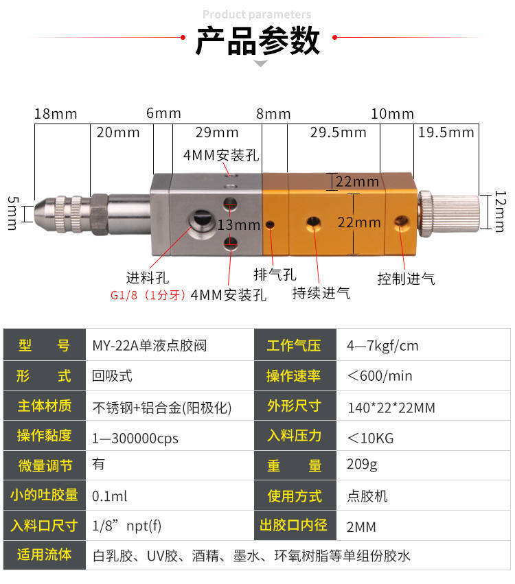1、22mm的寬度,屬于點(diǎn)膠閥合適的寬度,可承受的氣壓力更大,提升膠水流暢性;