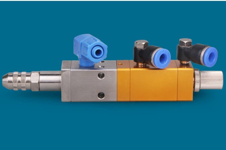 氣動(dòng):點(diǎn)膠閥由氣缸、閥體和料缸三部分上下連接而成,氣缸和閥體用先進(jìn)密封材料隔開(kāi),避免膠水侵入氣缸。料缸和氣缸連接在點(diǎn)膠閥閥主體上,與氣缸保證同心度。用電磁閥氣動(dòng)氣缸運(yùn)動(dòng),從而驅(qū)動(dòng)中心桿上下運(yùn)動(dòng),利用中心桿的上下運(yùn)動(dòng)達(dá)到對(duì)膠水的開(kāi)啟和關(guān)斷作用。根據(jù)開(kāi)啟和關(guān)斷的方式不同,從而分為: